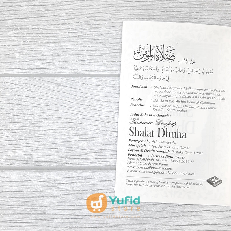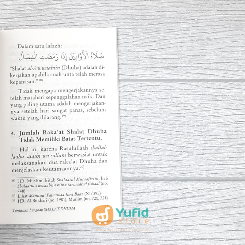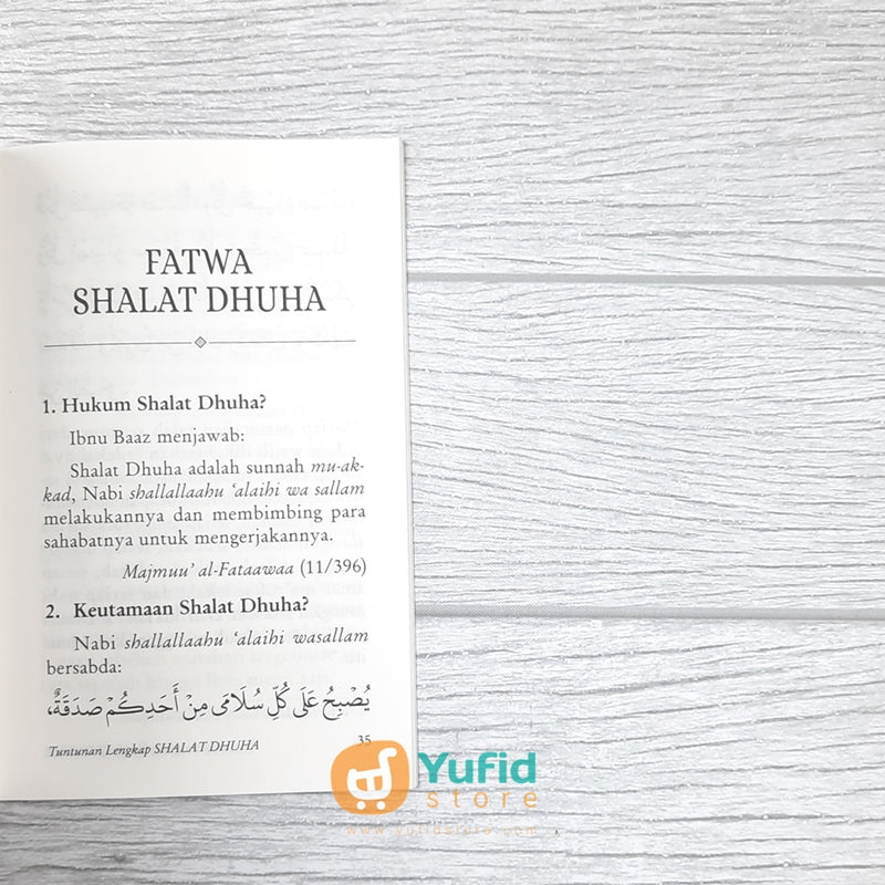 Buku Saku Tuntunan Lengkap Shalat Dhuha Disertai Keutamaannya hadir sebagai panduan ringkas, padat, dan terpercaya, diterjemahkan dari karya Syaikh Dr. Sa’id al-Wahaf al-Qahthani serta diperkuat pendapat ulama besar abad ini, Syaikh Abdul Aziz bin Baz rahimahullah. Buku ini menguraikan tata cara, waktu, keutamaan, faedah, serta hikmah shalat dhuha dengan dalil Al-Qur’an dan hadits shahih, menjadikannya rujukan praktis untuk menghidupkan sunnah mulia ini. Segera miliki buku ini dan raih ketenteraman hidup dengan istiqamah dalam shalat dhuha!