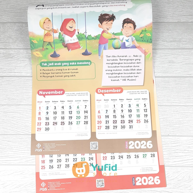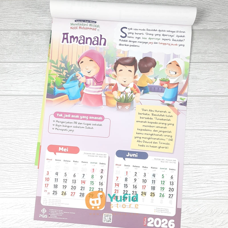 Pastikan si kecil punya Kalender Anak Hebat 2026 Meneladani Akhlak Nabi Muhammad dari PQS ini.