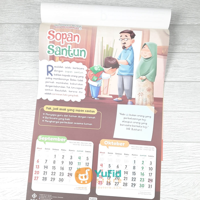Bayangkan setiap si kecil melihat kalender, ia langsung teringat salah satu akhlak mulia Rasulullah untuk dipraktikkan pada hari itu.