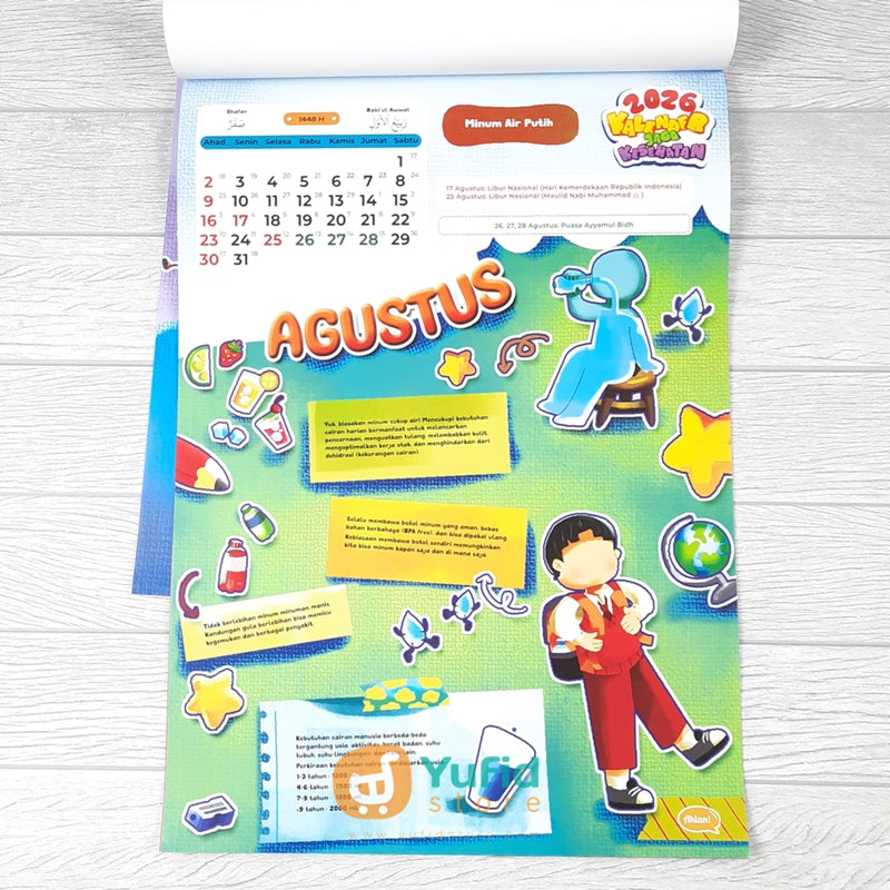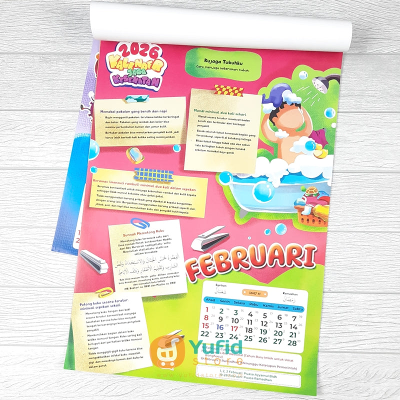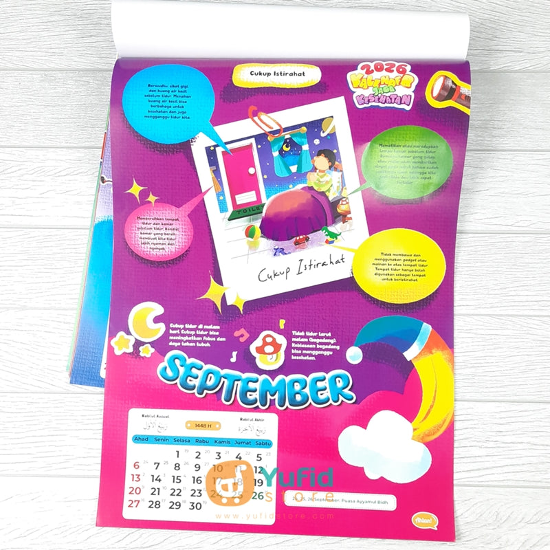 Kalender ini bukan hanya sebagai penanggalan, tapi juga dapat menjadi teman belajar kebiasaan sehat. Anak-anak dapat belajar menjaga kesehatan dengan cara yang seru, penuh warna, dan mudah dipahami.