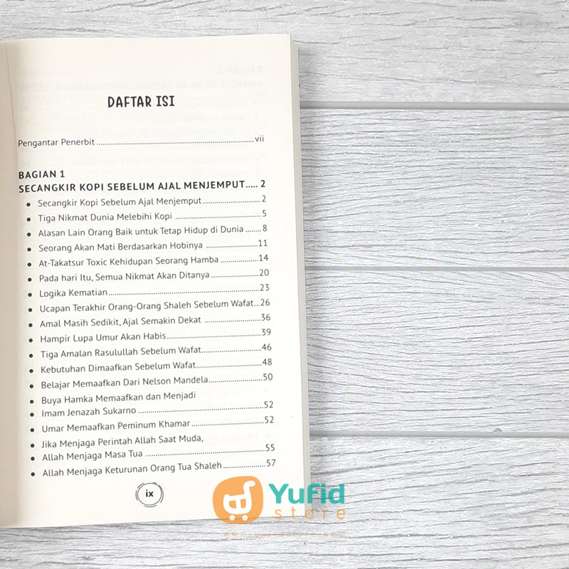 Buku Secangkir Kopi Sebelum Ajal Menjemput hadir sebagai teman renungan, menyuguhkan kisah, hikmah Qur’ani, dan inspirasi kehidupan dengan gaya bahasa yang ringan namun penuh makna. Ditulis dengan sentuhan khas penulis yang mampu mengajak pembaca merenung sekaligus tersenyum, buku ini layak jadi sahabat santai sekaligus pengingat mendalam. Telah mendapatkan apresiasi dari banyak pembaca muslim, buku ini terbukti memberikan energi spiritual dan motivasi baru. Jangan tunda lagi, miliki bukunya sekarang dan temukan secercah hikmah yang bisa mengubah hidup Anda!