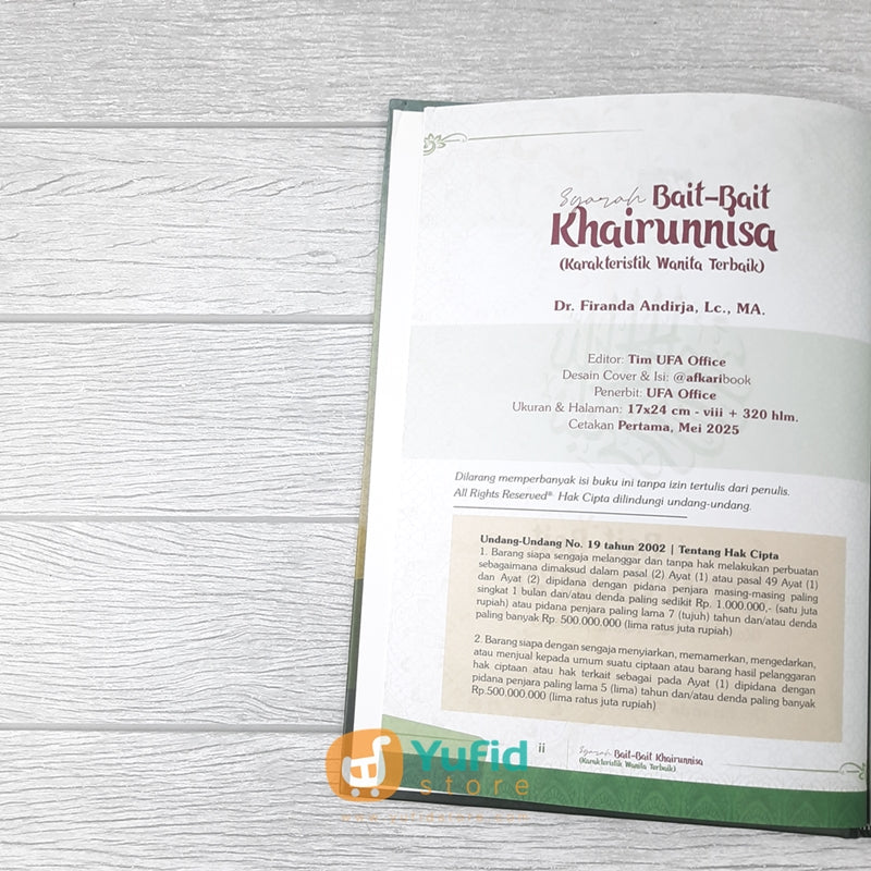 BUKU SYARAH BAIT-BAIT KHAIRUNNISA - KARAKTERISTIK WANITA TERBAIK (UFA OFFICE)