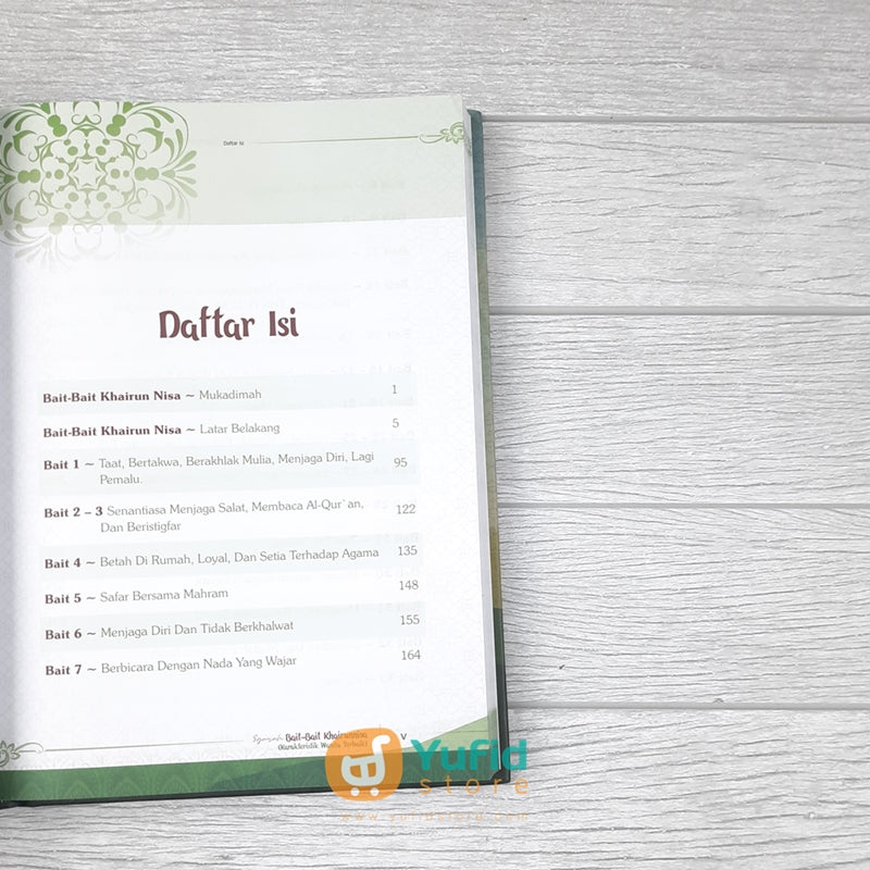 Buku Syarah Bait-Bait Khairunnisa (Karakteristik Wanita Terbaik) ini berisi penjelasan dari bait-bait syair yang menggambarkan sifat-sifat wanita terbaik. Judul bait-bait tersebut adalah Khairun Nisa' yakni Wanita Terbaik. Bait-bait (qasidah) ini ditulis oleh Dr. Ali bin Yahya al-Haddadi, seorang dosen di Universitas Islam Muhammad bin Saud di Riyadh, Arab Saudi.